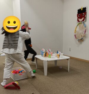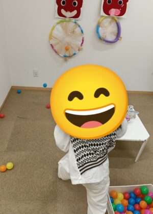 豆の代わりに、小さいボールを投げて「豆まき遊び」を楽しみました!